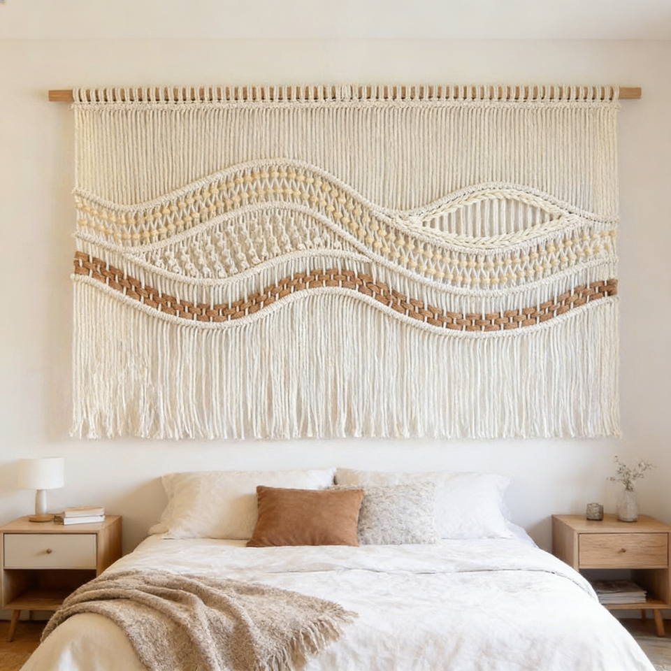 Grande tapisserie bohème tissée à la main avec des franges, minimaliste, polyvalente, de haute qualité, décoration murale pour la maison, le café, l'atelier