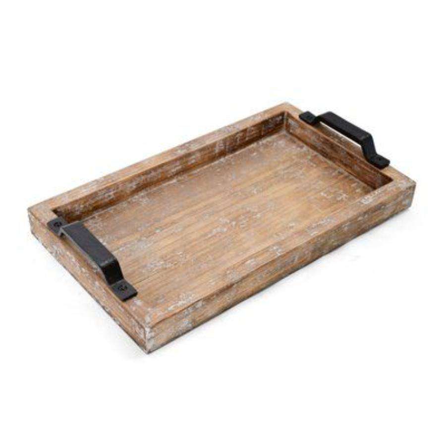 Grand plateau de service pour le petit-déjeuner en bois écologique décoratif avec poignées en métal, passe au lave-vaisselle, style moderne européen américain