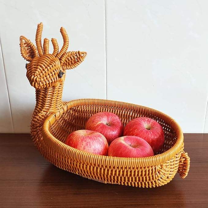 Grande corbeille à fruits en rotin brun en forme d'écureuil Plateau à collation et présentoir à pain en jonc de mer tissé