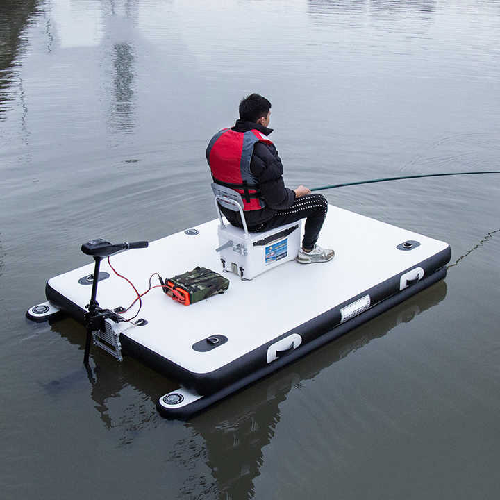 Plateforme de pêche gonflable à grande flottabilité, tapis de pêche pliable en drop-stitch, ponton compatible avec moteur hors-bord