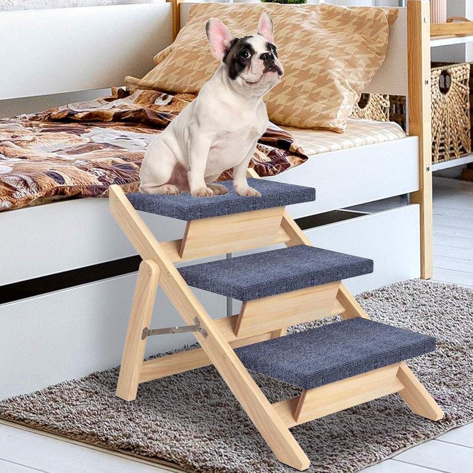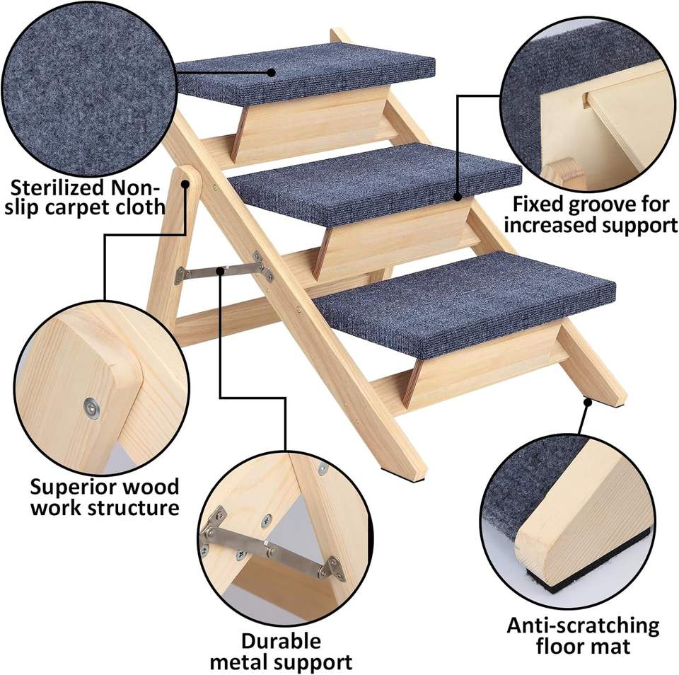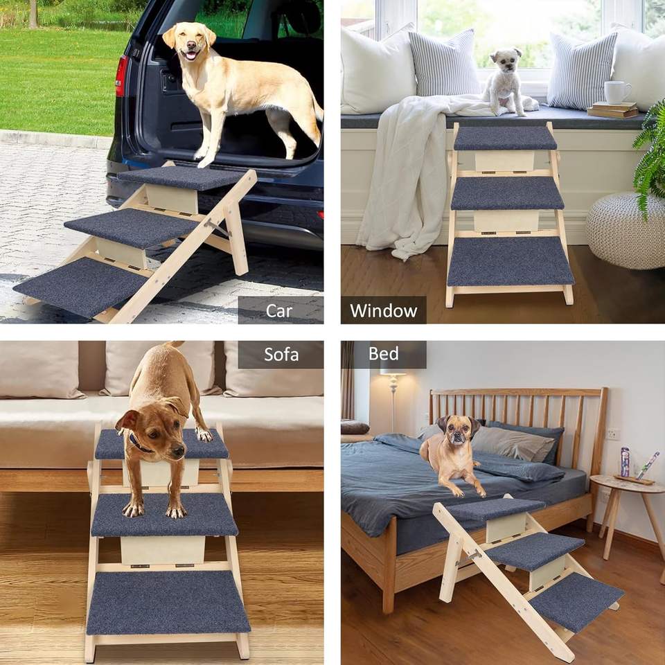 Escalier en bois 2-en-1 de grande capacité, rampe pour chien, escalier pliable pour voiture et lits, escalier pour tous les chiens et chats