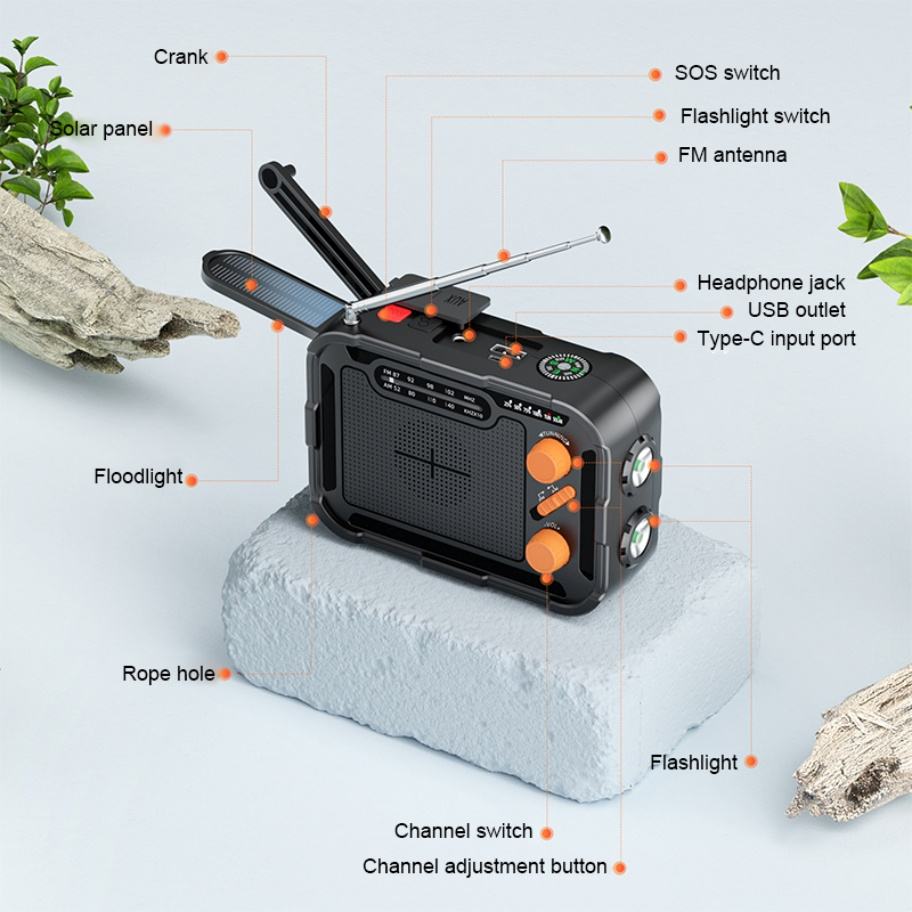 Batterie solaire portable grande capacité 5000 mAh avec affichage multifonctionnel pour charge d'urgence en extérieur