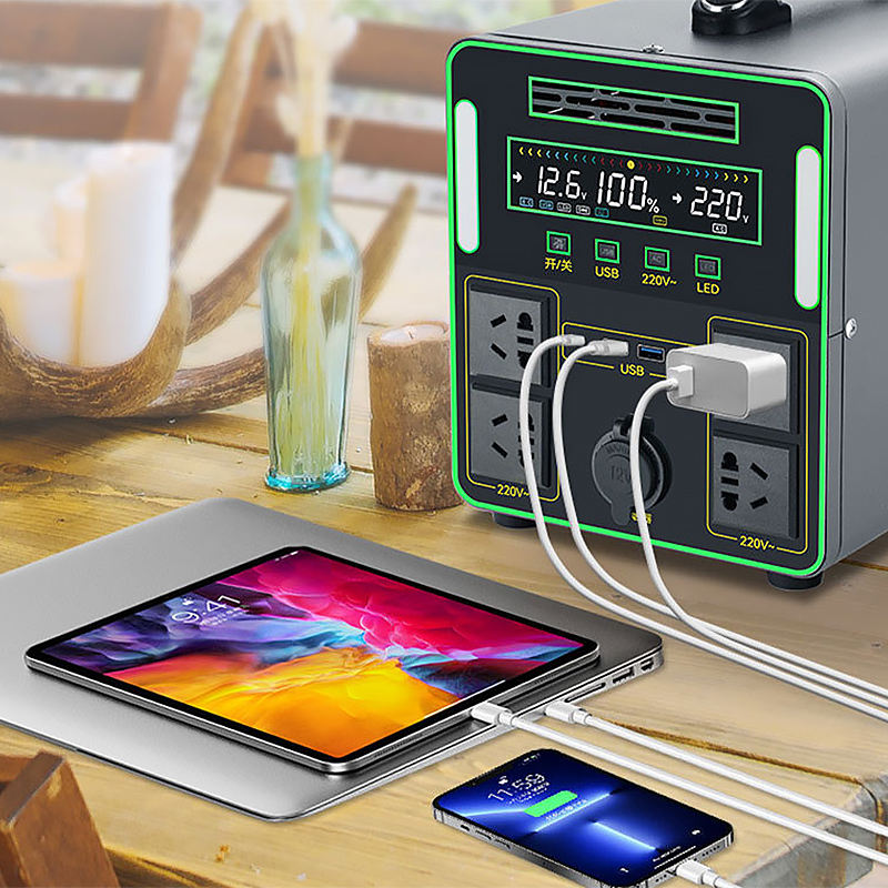 Station portable à grande capacité 5 kWh, batterie lithium-ion, panneau solaire, onde sinusoïdale pure, contrôleur MPPT pour diffusion en direct, urgence familiale
