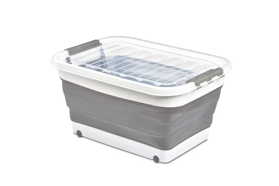 Description:Conteneur de rangement pliable avec roulettes
