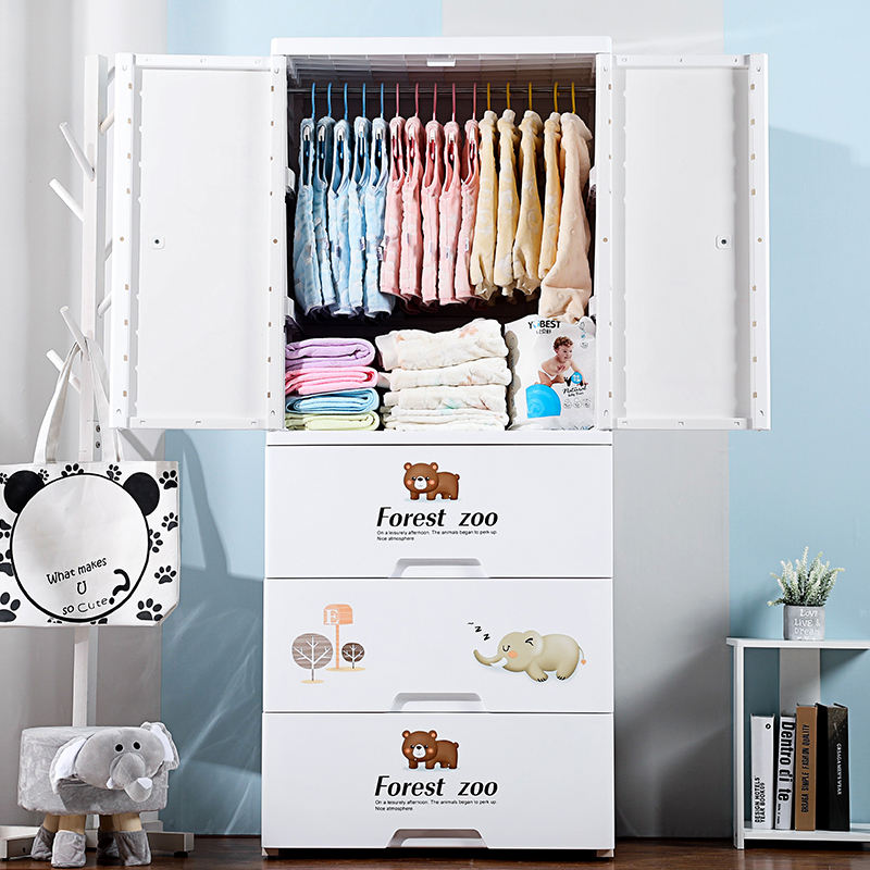 Armoire double porte grande capacité 66 cm, organisateur de rangement suspendu complet, motif mignon, qualité durable