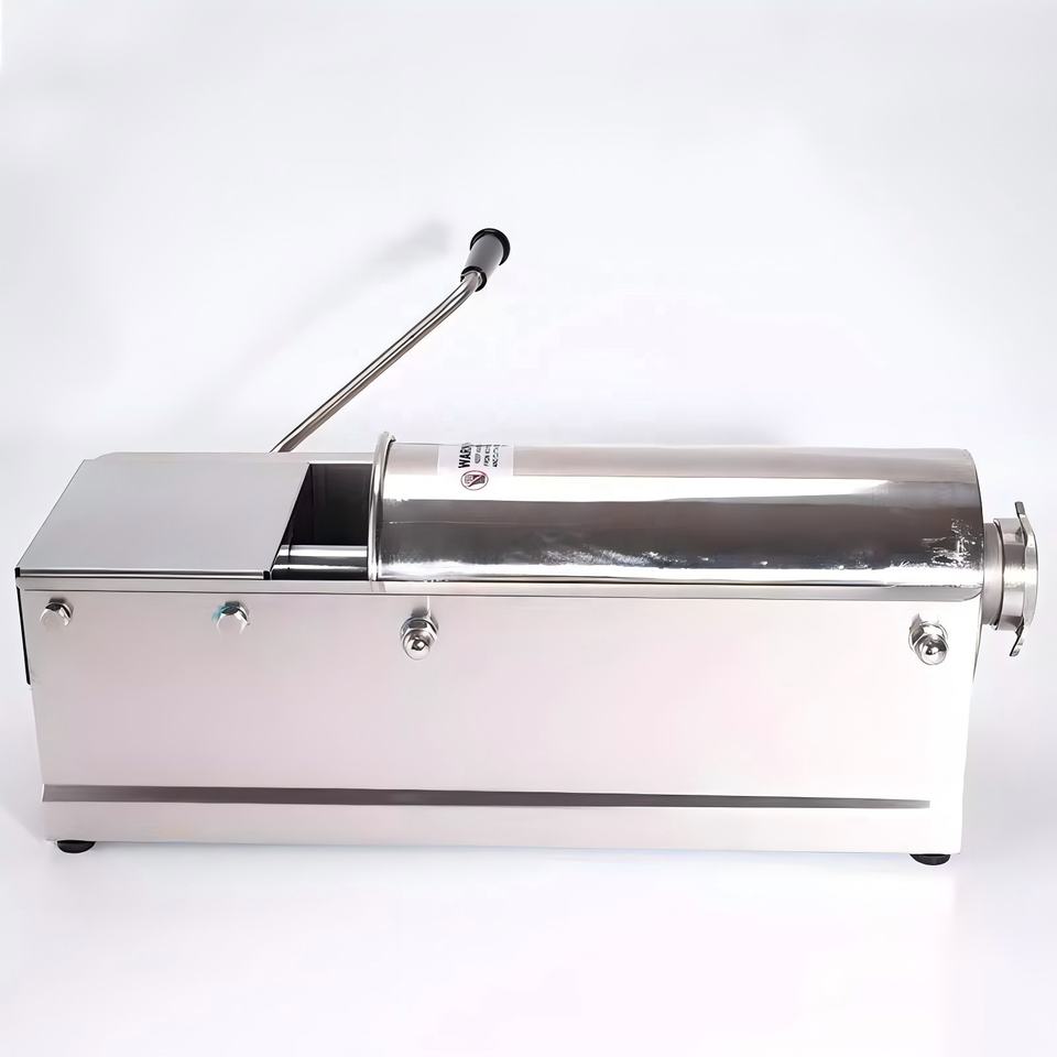 Remplisseuse à saucisses manuelle grande capacité 7L, conception horizontale professionnelle, fabrication efficace de produits gastronomiques pour la boucherie et l'atelier