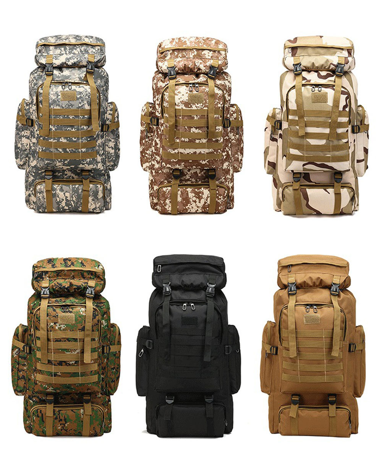 Sac à dos tactique de sport de plein air de grande capacité 80L, design camouflage imperméable pour la randonnée, les voyages décontractés, l'escalade