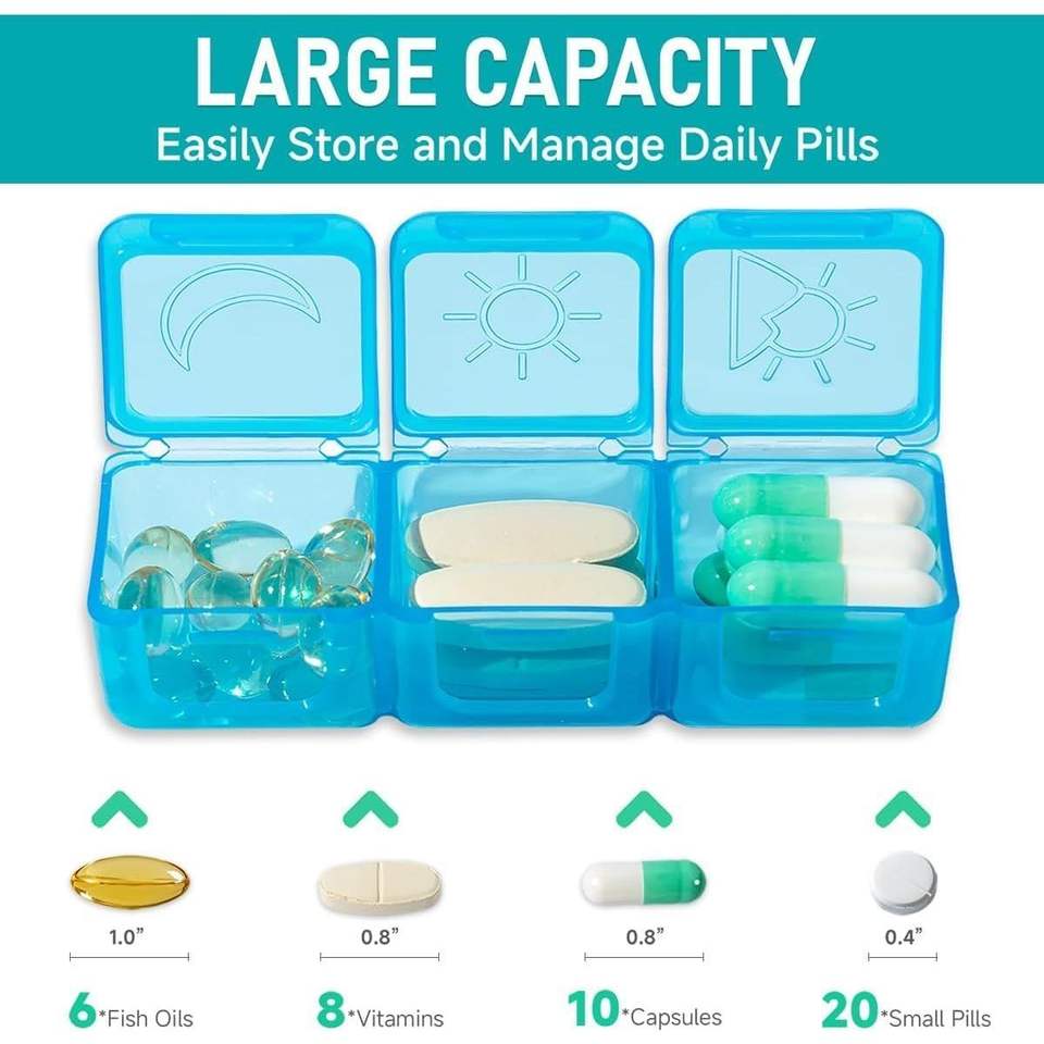 Organisateur de pilules portable grande capacité AM/PM, sac de voyage hebdomadaire avec étiquettes, étui de rangement mensuel pour pilules