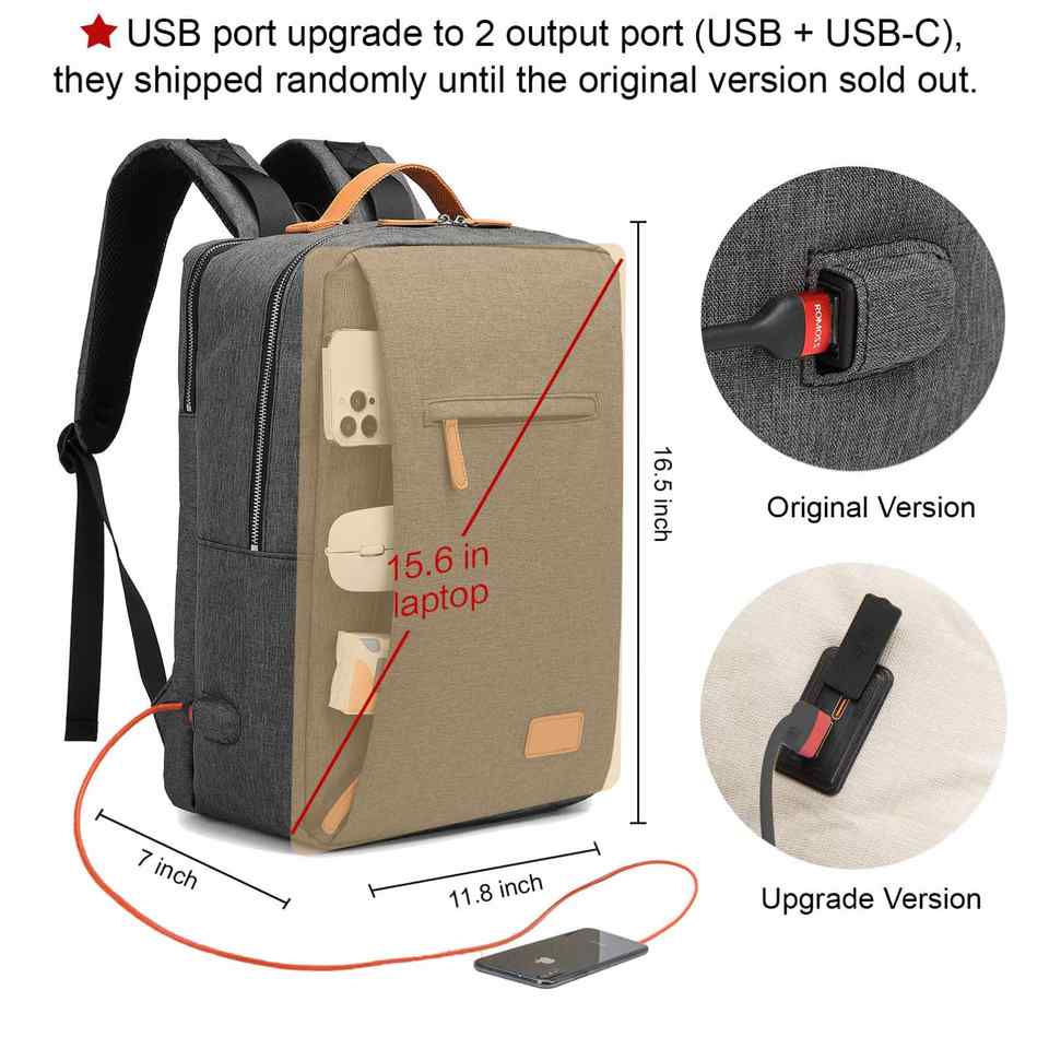 Sac à dos pour ordinateur portable de randonnée et d'affaires, grande capacité, antivol, avec port de charge USB