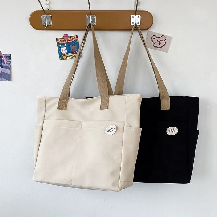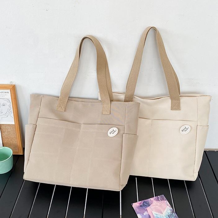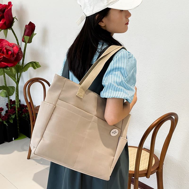 Grande Capacité Décontracté Simple Carré Lettre Étiquettes Zip Oxford Tissu Épais Multipoches Fourre-Tout Téléphone Sac À Main Sac À Bandoulière Pour Femmes