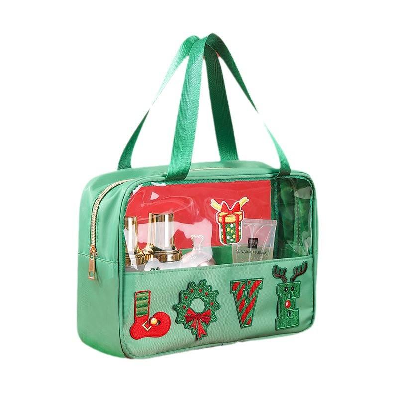 Trousse de maquillage brodée en chenille de grande capacité Fermeture à glissière de rangement de voyage de grande valeur pour Amazon Mode de Noël pour trousse de toilette