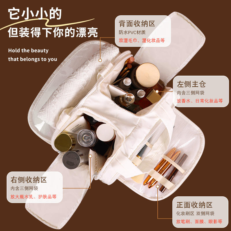 Sac à cosmétiques compartimenté de grande capacité avec poignée souple, étui de rangement extensible léger pour articles de toilette de voyage, couleur unie