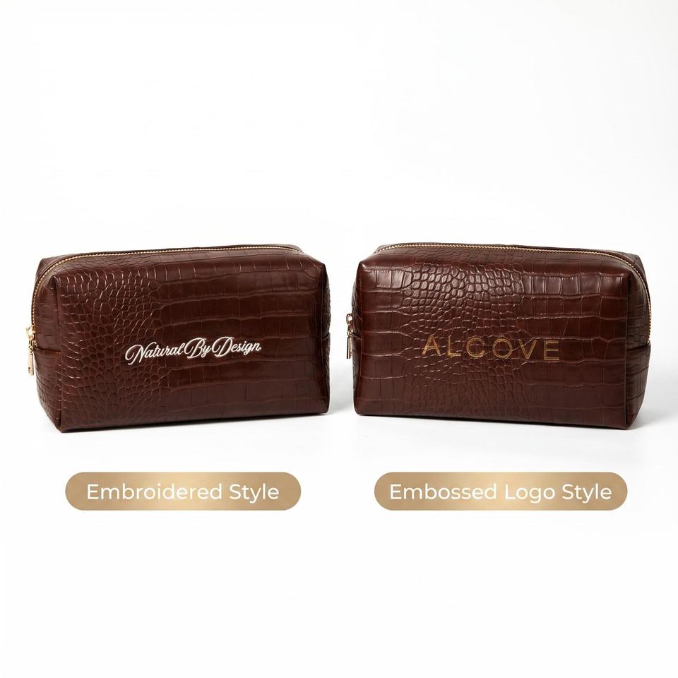 Grande trousse de maquillage en cuir PU à motif crocodile, trousse de toilette de luxe marron pour femmes, trousse de toilette à imprimé crocodile