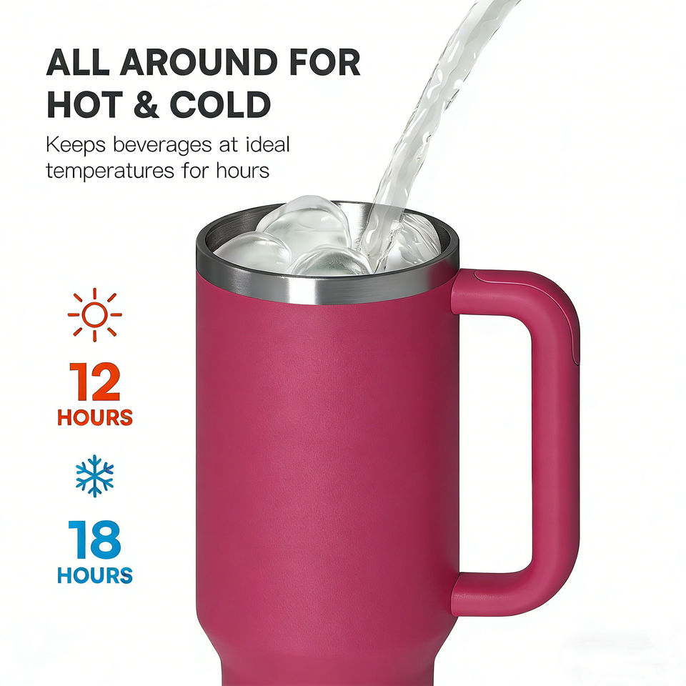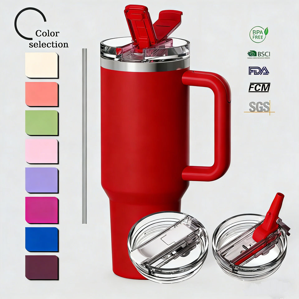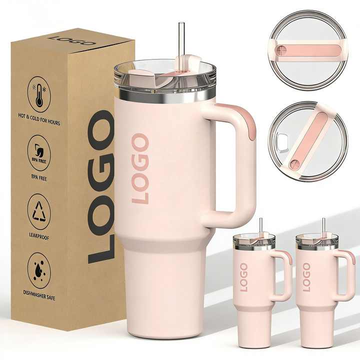 Mug à café isotherme à double paroi en acier inoxydable, grande capacité, avec logo personnalisé, anti-fuite, pour l'extérieur, 20-40 oz, avec poignée