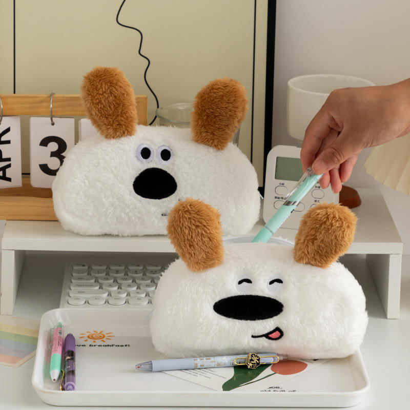 Grande capacité mignon chien dessin animé peluche porte-crayon étudiant stockage bureau fermeture à glissière sac à usage spécial sacs et étuis