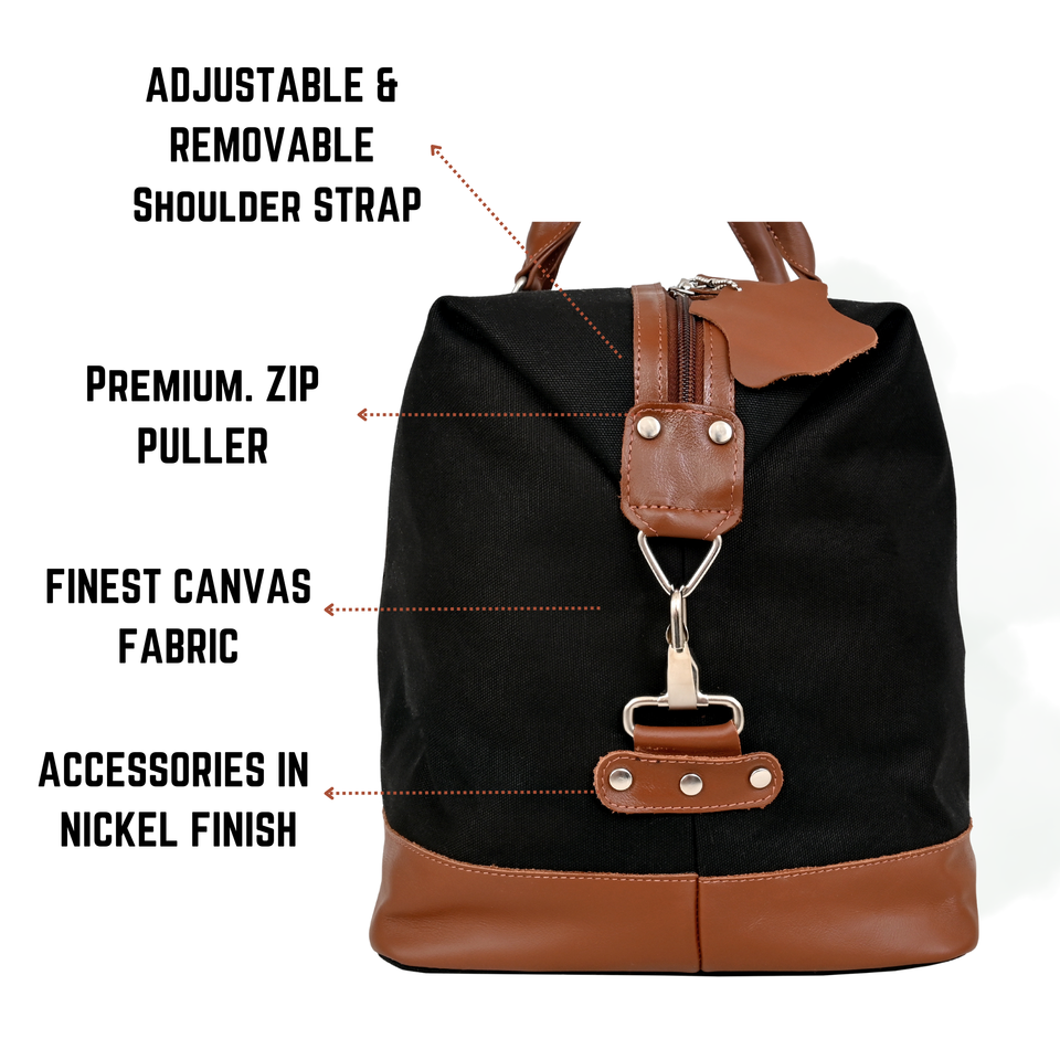 Sac de voyage pliable grande capacité en cuir véritable noir et toile, avec fermeture éclair en polyester, unisexe, pour week-end