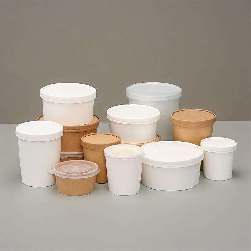 Seau en papier kraft jetable grande capacité, écologique, avec couvercles en PE, étanche et compatible micro-ondes, pour soupes, café et aliments à emporter