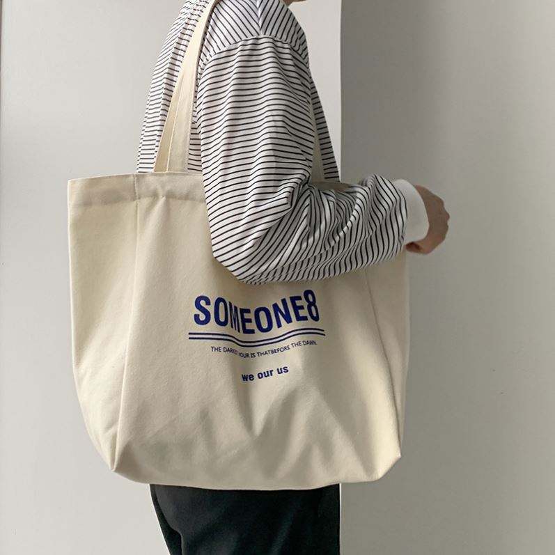 Sac Bento Réutilisable Grande Capacité Écologique MULUN pour Femmes, Sac à Main en Toile avec Fermeture Éclair et Motif Lettres Sérigraphiées, Usage Quotidien