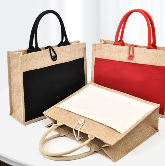 Grand sac fourre-tout de plage en jute écologique avec poignées en coton doux et option d'impression personnalisée