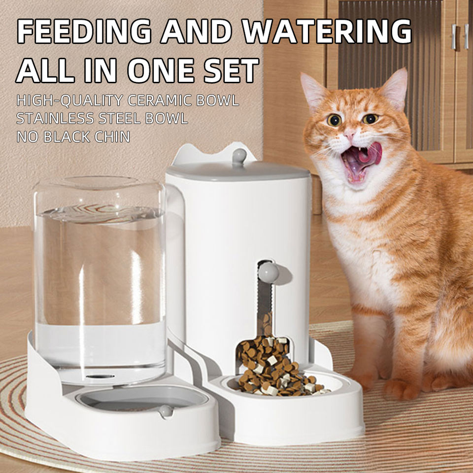 Distributeur automatique d'aliments pour animaux de compagnie de grande capacité, écologique, bouteille de stockage de nourriture pour chiens et chats, bol d'eau potable, design pliable en plastique durable