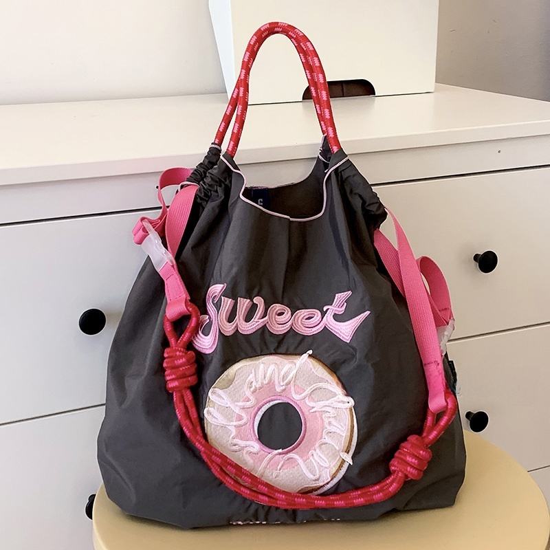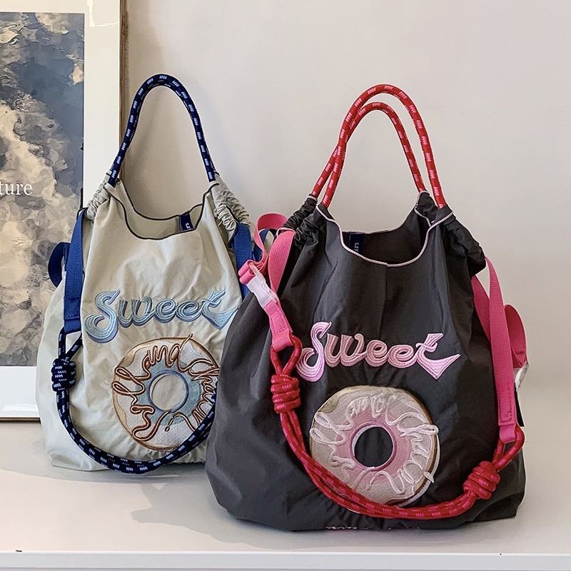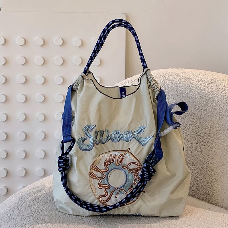 Sac bandoulière en nylon brodé grande capacité pour femme, sac de shopping écologique en toile imperméable, style urbain simple en polyester