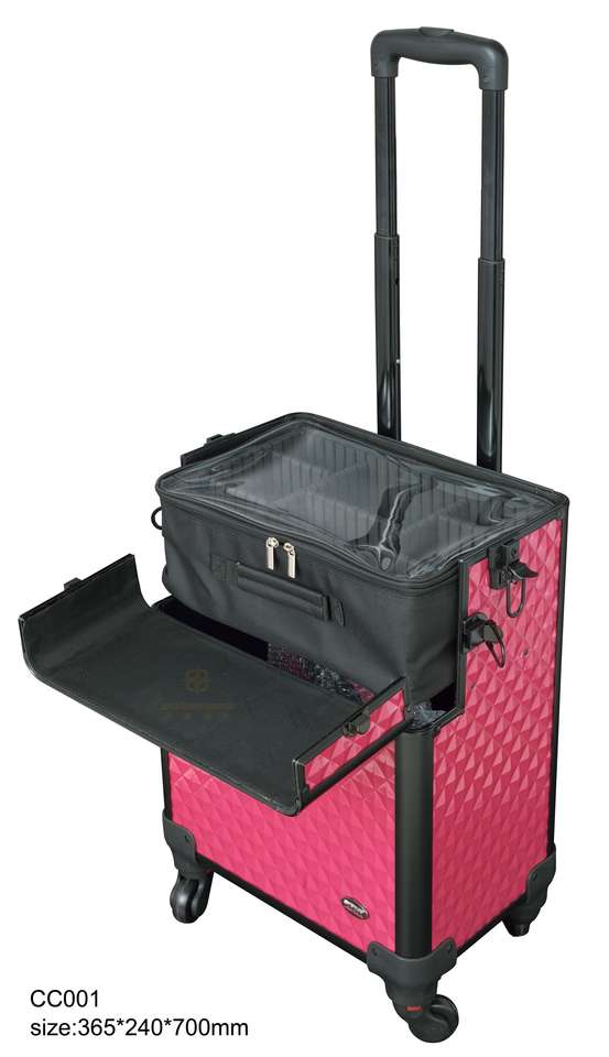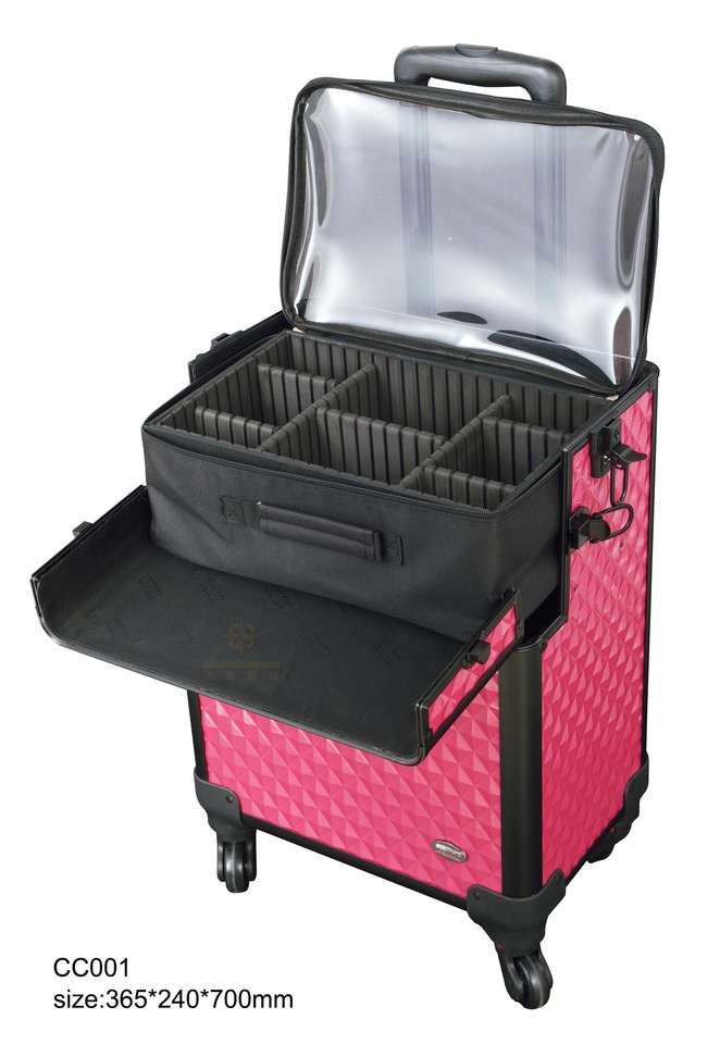 Valise de Maquillage à Roulettes Grande Capacité Style Tendance pour Cosmétiques, Ongles, Tatouages et Manucure, avec Diamants