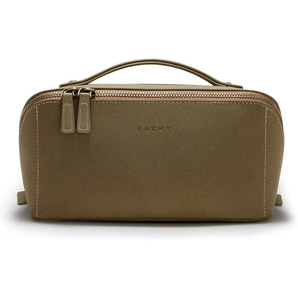 Grande trousse de maquillage de voyage en faux daim pour femmes, organiseur portable avec pochette plate ouverte, trousse de toilette cosmétique