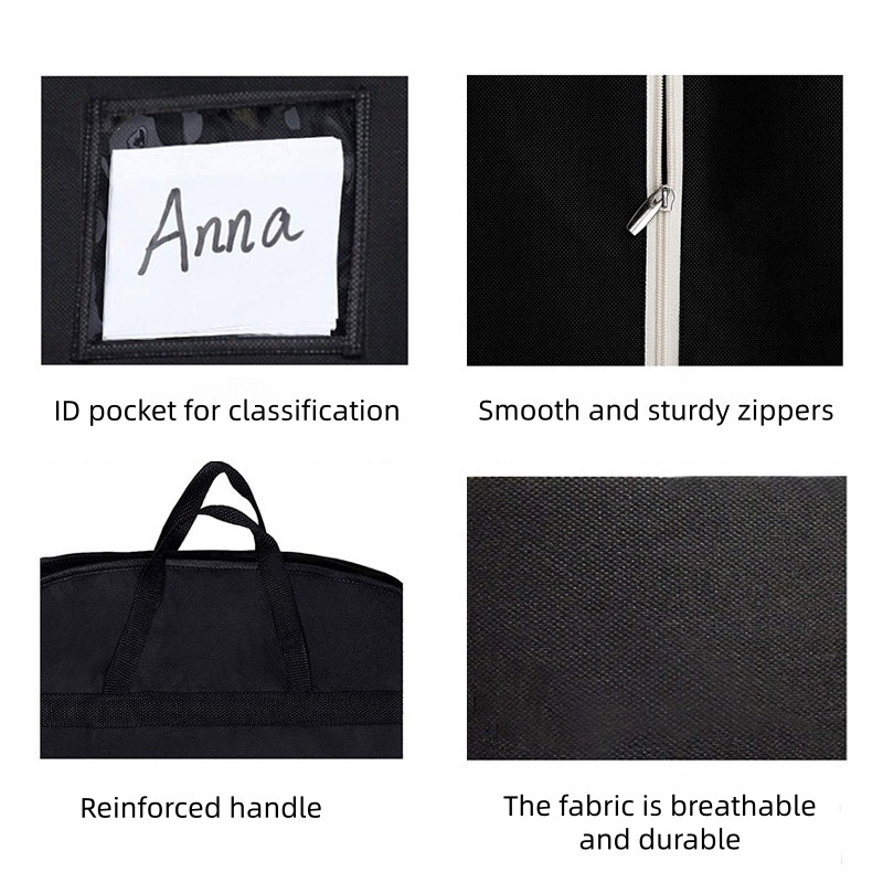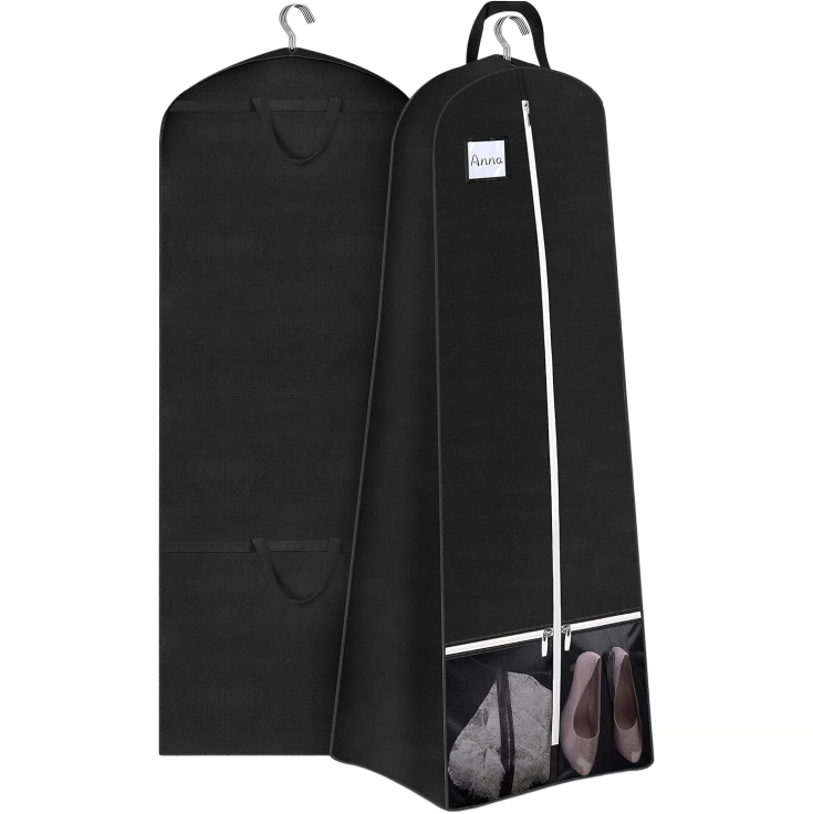 Housse de rangement pliable grande capacité pour robe de mariée et robes de soirée, noire, avec soufflets et poches, pour voyage