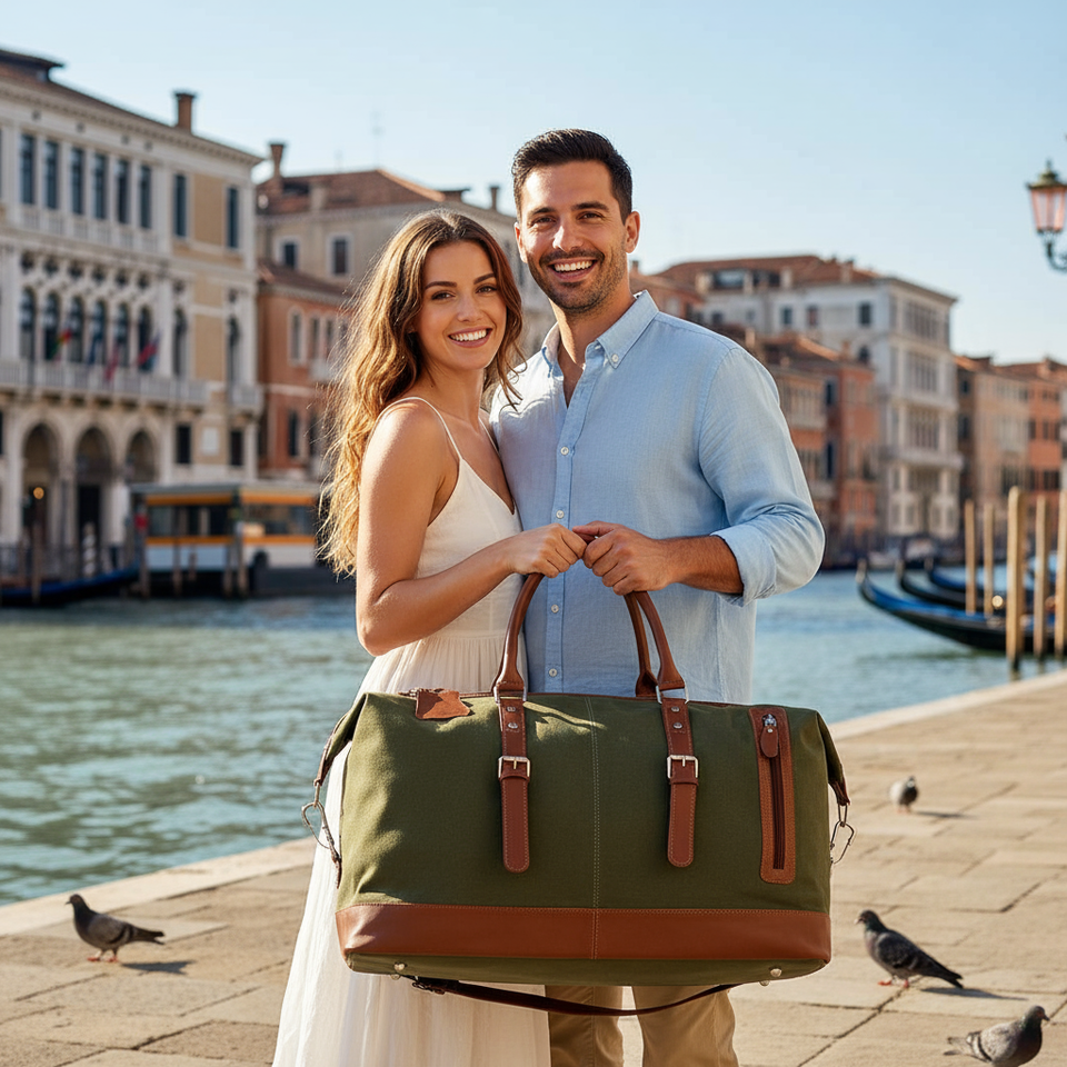 Sac de voyage pliable grande capacité en toile kaki avec fermeture éclair en polyester, haute qualité, unisexe, pour week-end, bagage cabine