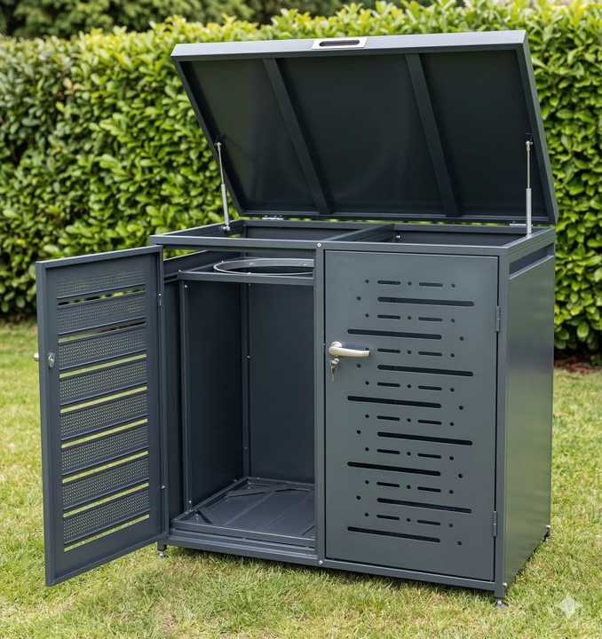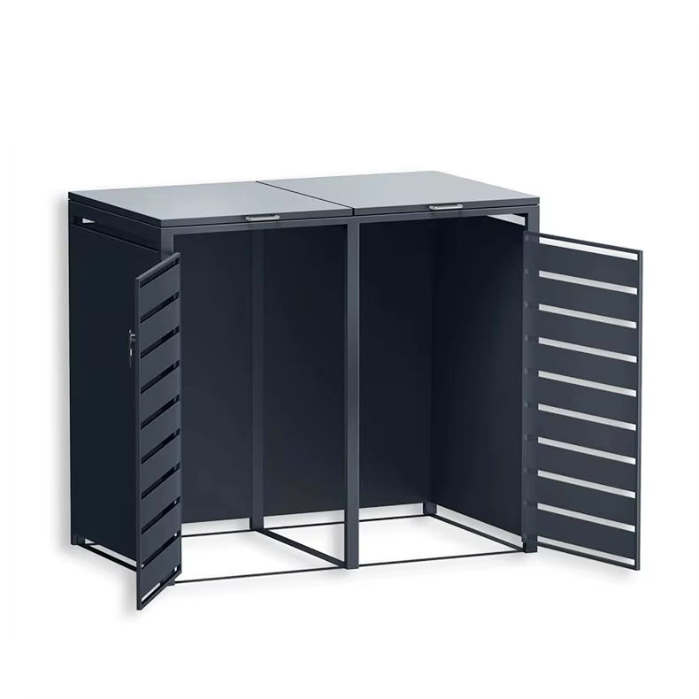 Bac de Rangement en Acier Galvanisé Grande Capacité, Abri Ignifuge pour Poubelle avec Double Porte pour Usage Commercial Extérieur