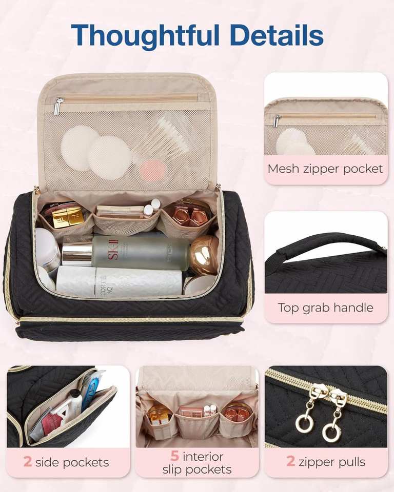 Trousse de toilette de voyage suspendue grande capacité, résistante à l'eau, avec plusieurs poches pour le maquillage et les articles de toilette