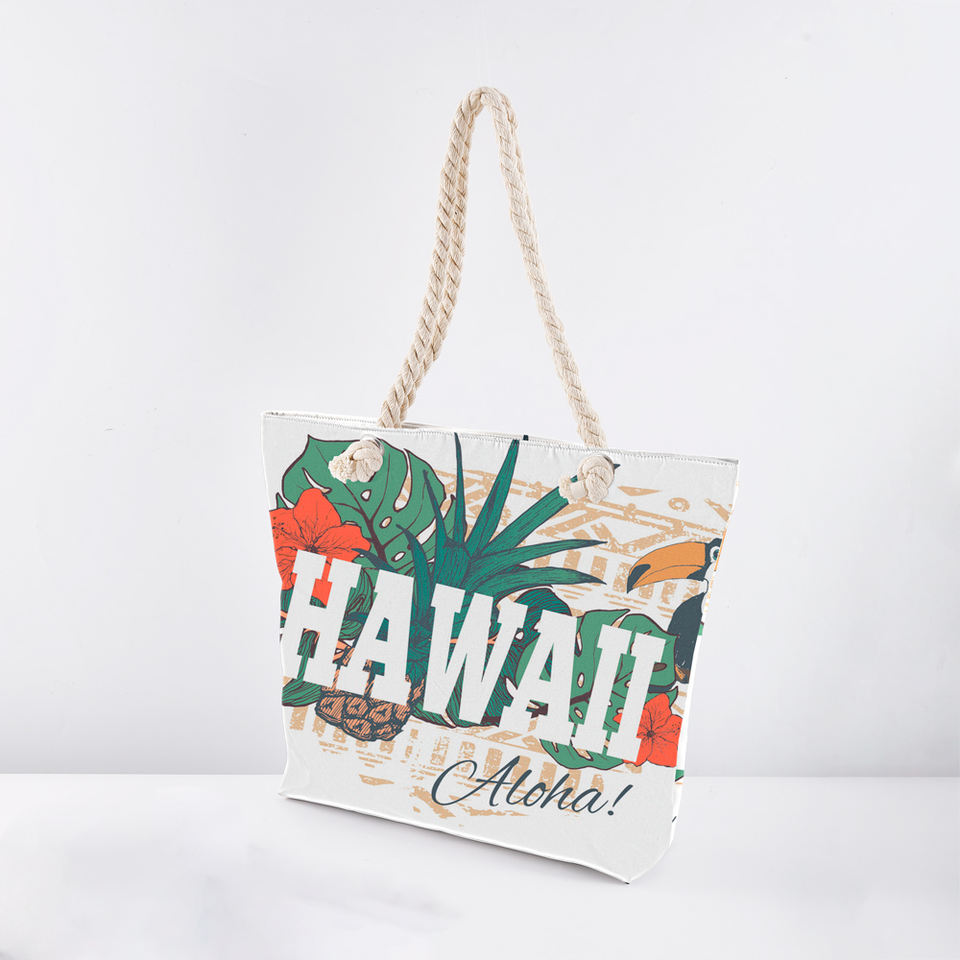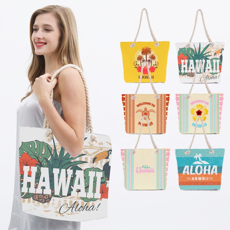 Sac fourre-tout Hawaii grande capacité pour dames île Souvenir toile voyage surf sac de plage fermeture éclair pliable caractéristique lettre