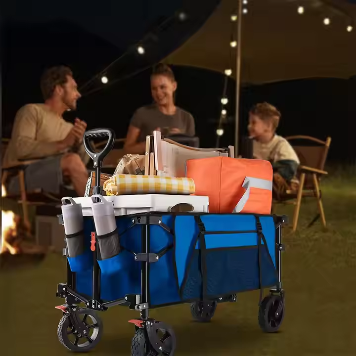 Chariot de plage utilitaire pliable de grande capacité avec poche latérale et freins personnalisable OEM