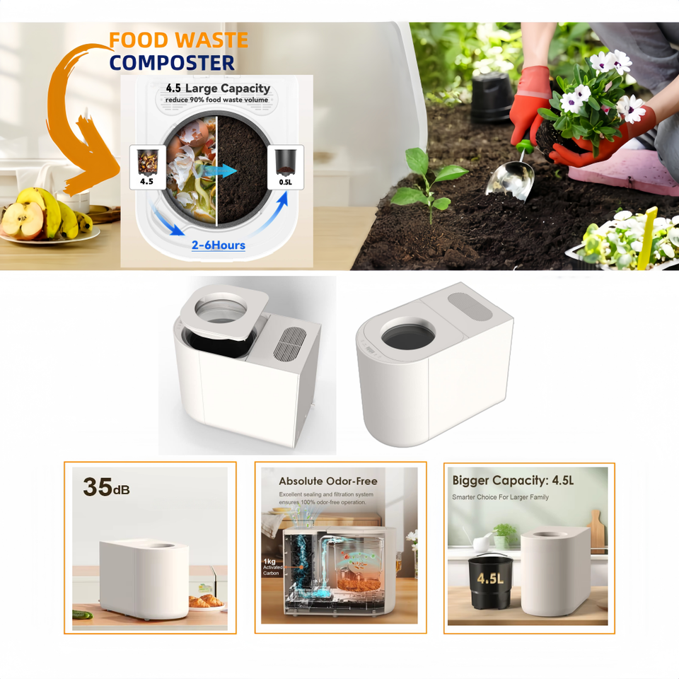 Composteur de cuisine grande capacité 4,5 L, machine intelligente électrique automatique pour le recyclage des déchets alimentaires en intérieur