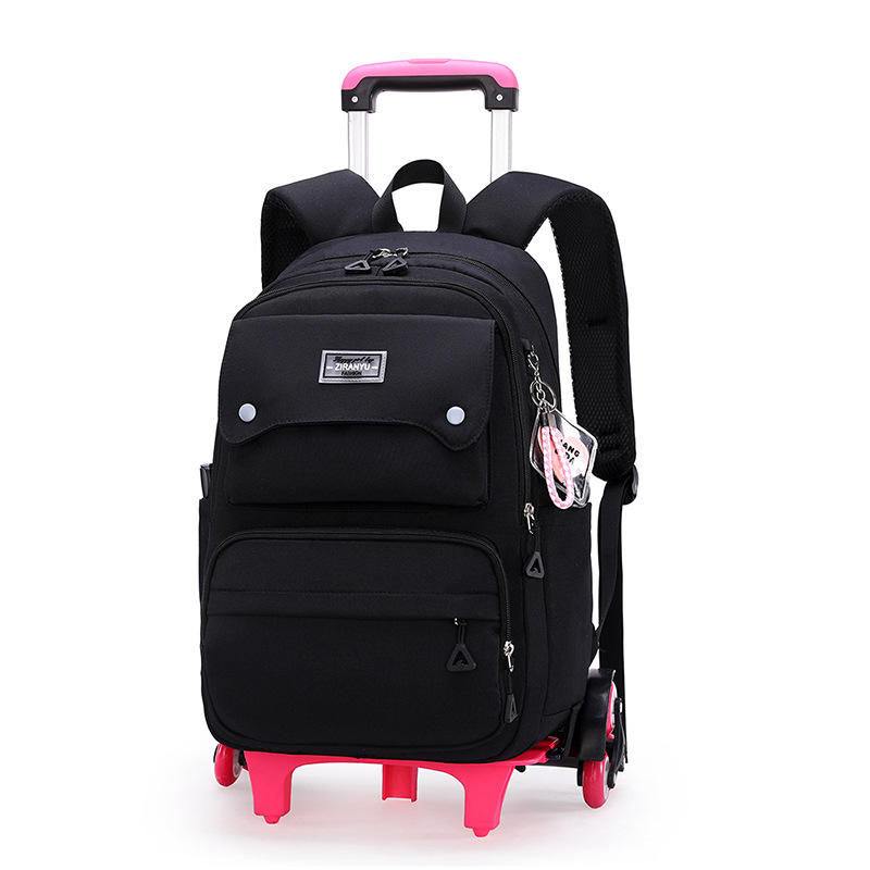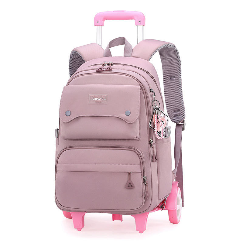 Sac à dos étudiant grande capacité léger et imperméable avec barre de traction à six roues pour élèves du primaire