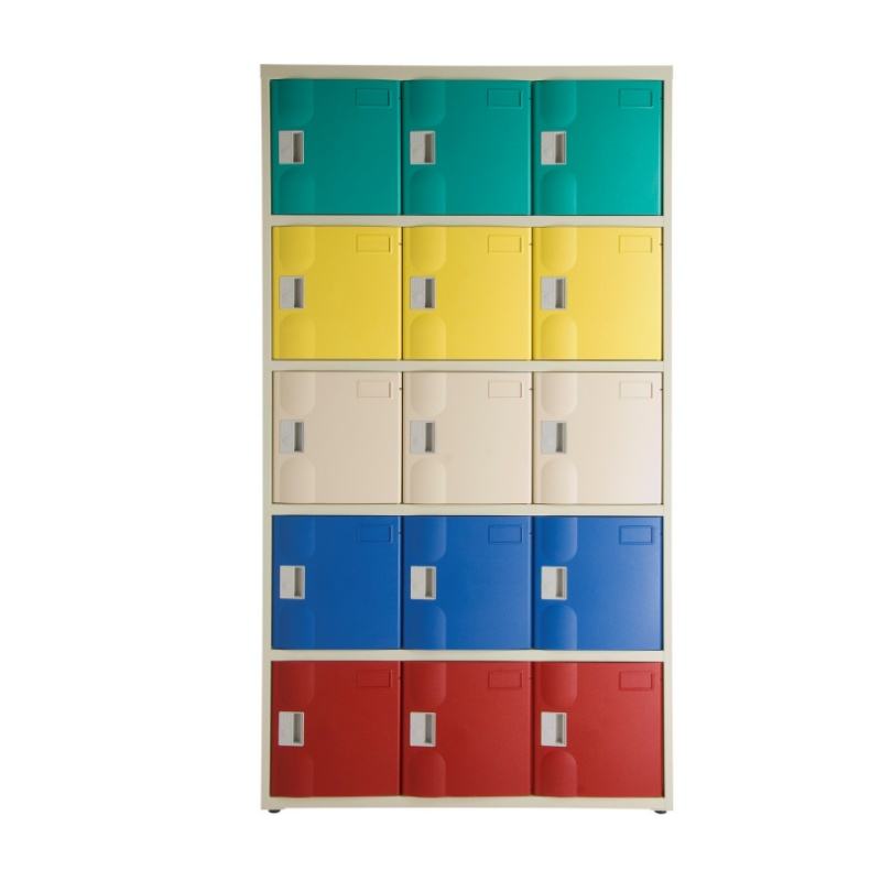 Casier électronique grande capacité pour sacs de voyage, 15 compartiments, 5 niveaux, en plastique et acier, à rayures colorées, pour parcs d'attractions, en ABS et métal