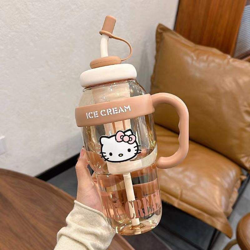 Tasse à eau grande bouche MAC de grande capacité avec paille Tasse à thé pratique en verre et thé à fleurs Tasse en plastique Ice Bullies Cup
