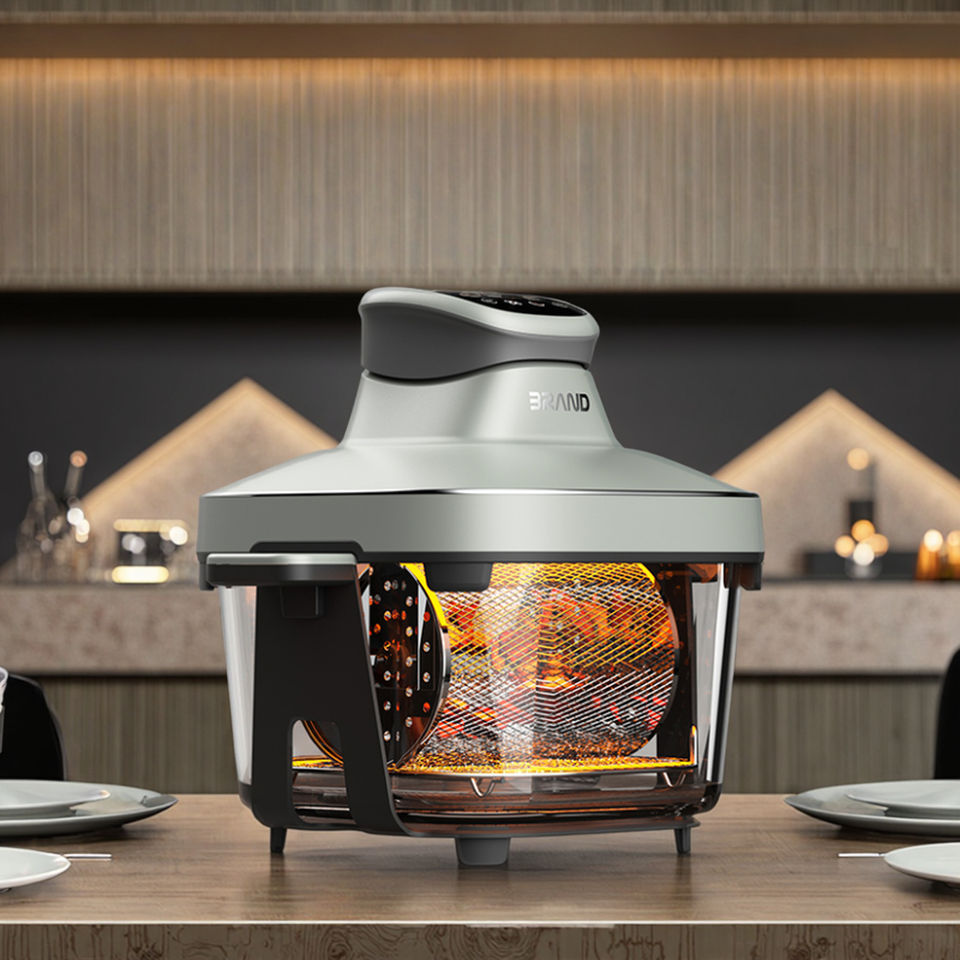 Four électrique sans huile multifonction de grande capacité Friteuse à air en verre à fonction de puce intelligente visible