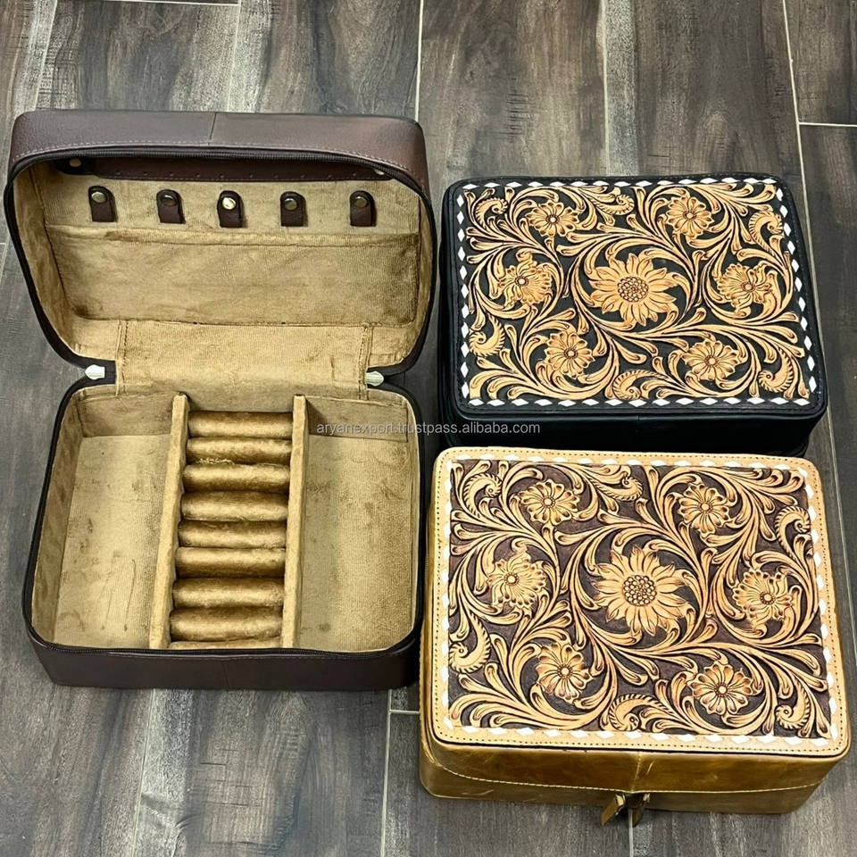 Product Name:Hand Tooled Cowhide Leather Large Jewelry Case