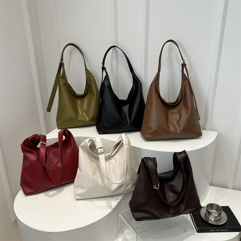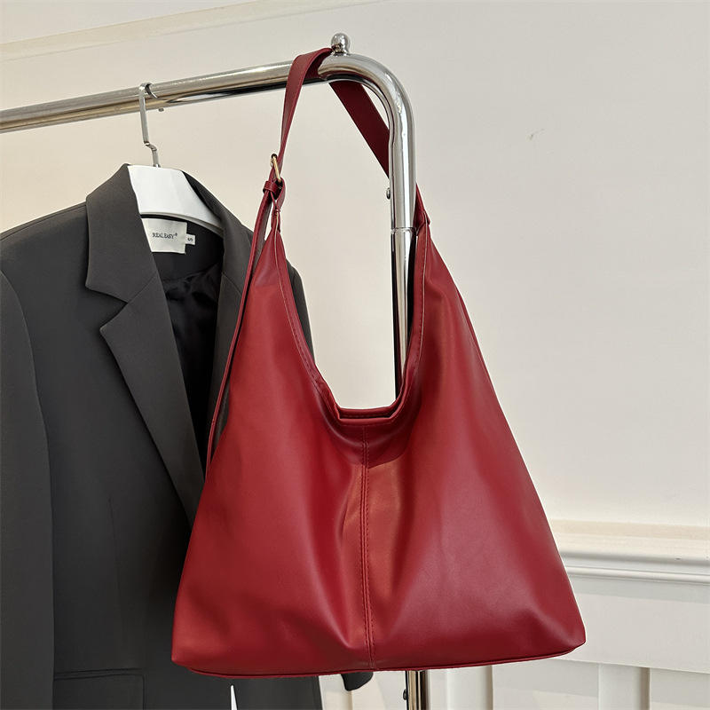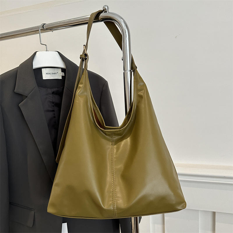 Sac fourre-tout décontracté pour femme en PU grande capacité, nouvelle collection hiver, couleur unie, texture simple, à porter à l'épaule ou sous le bras
