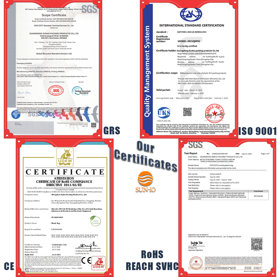 Certificat:BSCI/CE/GRS/ISO 9001/ROSH/FDS
