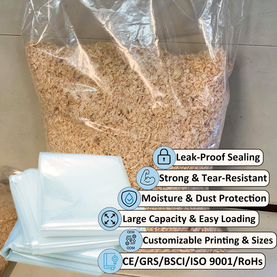 Sacs en poly de grande capacité pour copeaux de bois Chargement facile Forte Flexible Idéal pour la sciure de bois en vrac et l'emballage de granulés