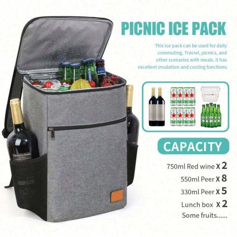 Sac à dos isotherme portable grande capacité en aluminium épais pour pique-nique et repas en extérieur