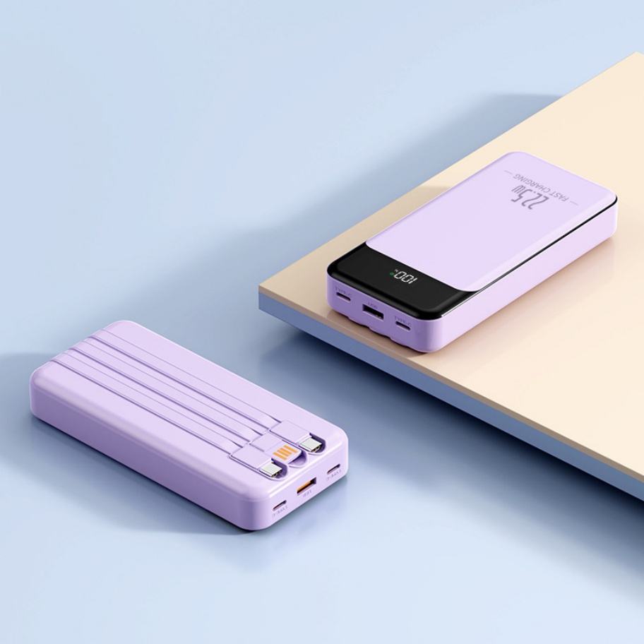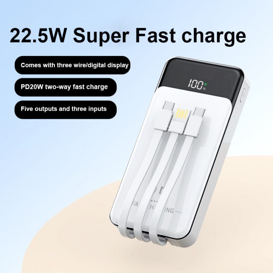 Large Capacity Power Supply Smart Fast Charger Built-in Type C Cables 20000mah PD20W Power Bank Custom Logo