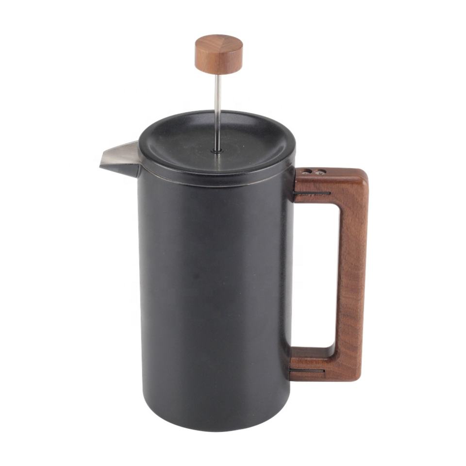Grande capacité, manche en bois véritable et tête de piston, cafetière à double paroi en acier inoxydable 304 avec presse française