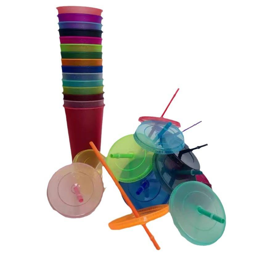Grande Tasse à Paille en Plastique Réutilisable de Grande Capacité, 710 ml/24 oz, Effet Poudré Scintillant, pour Jus, avec Couvercle et Paille