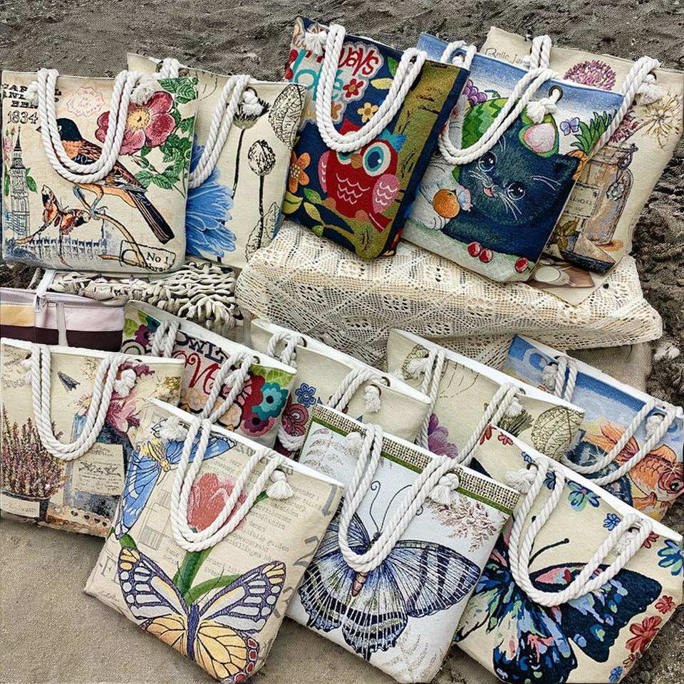 Sac fourre-tout d'été en toile à bandoulière unique, grande capacité, réutilisable, style bohème vintage, motif floral tropical, pour femme