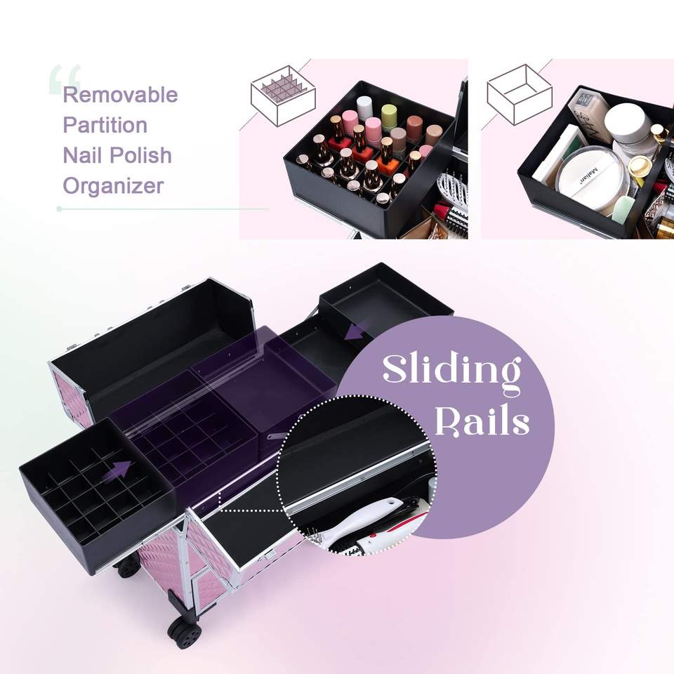Grand Chariot de Maquillage Roulant à Grande Capacité, Valise à Ongles Professionnelle pour le Voyage, Coffre de Beauté à Roulettes