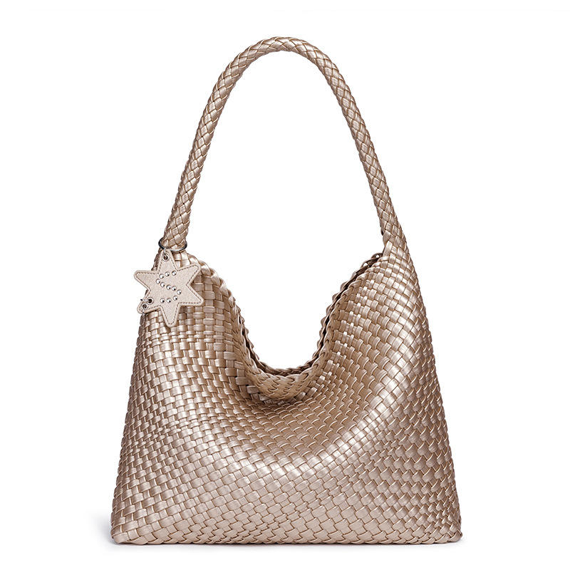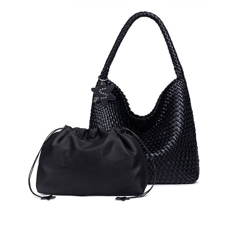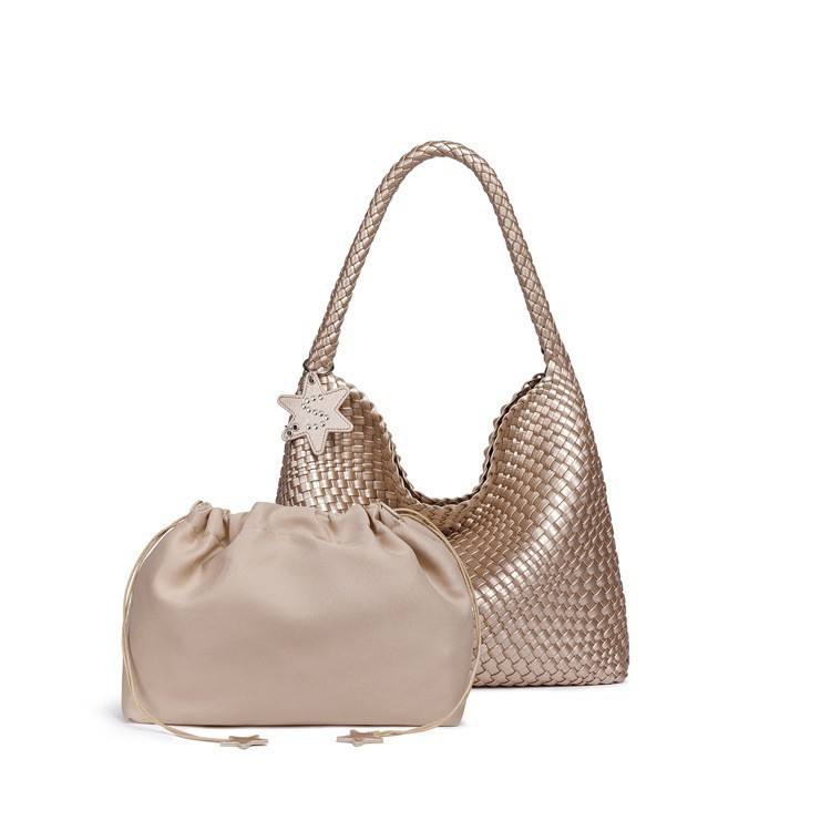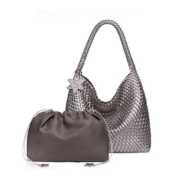 Ensemble sac à bandoulière besace en cuir PU métallique tissé scintillant de grande capacité fermeture magnétique pochette à cordon détachable