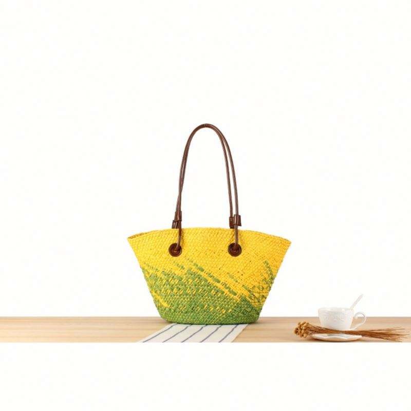 Sac de plage à bandoulière grande capacité en paille tressée et crochetée